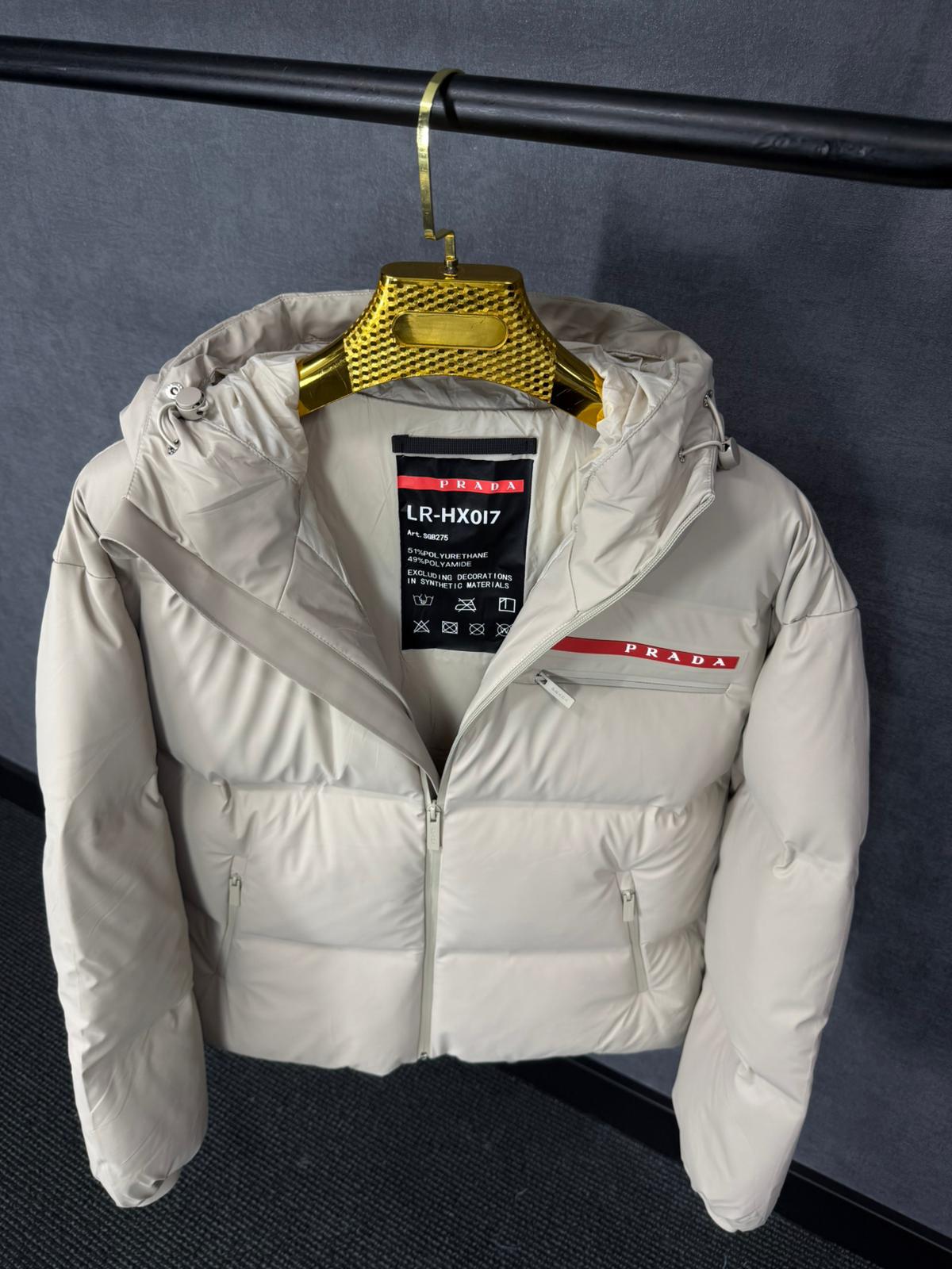 Prada Beige Re-Nylon Hooded Puffer Jacket High Quality